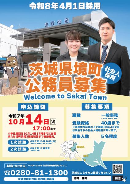 境町では、民間企業等で培った知識や経験や資格を境町で活かそうという意欲があり、即戦力として活躍できる人材を対象とした職員募集を行います。