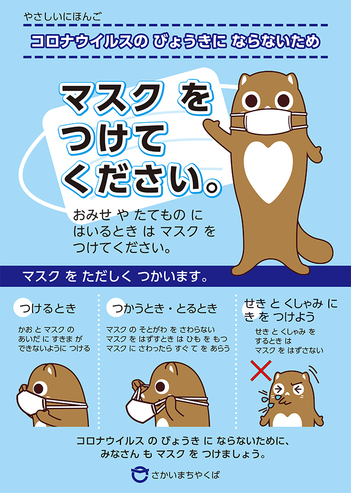 こちらから やさしい日本語(にほんご)と 英語(えいご)の ポスターを ダウンロードして お店(みせ) や 人(ひと)が集(あつ)まる場所(ばしょ) で つかってください。